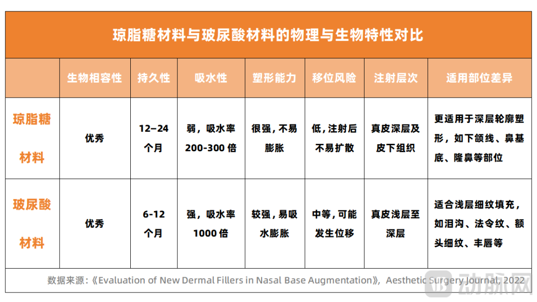 以医美注射为例,由于不同材料本身的降解周期、性状和软硬度、微结构不同,使得基于不同材料的产品在注射层次和整形效果的设计方向上大相径庭:一般来说,硬的材料适用于深层注射和局部塑形;软的材料适用于注射在较浅的层次治疗细纹或大面积填充。