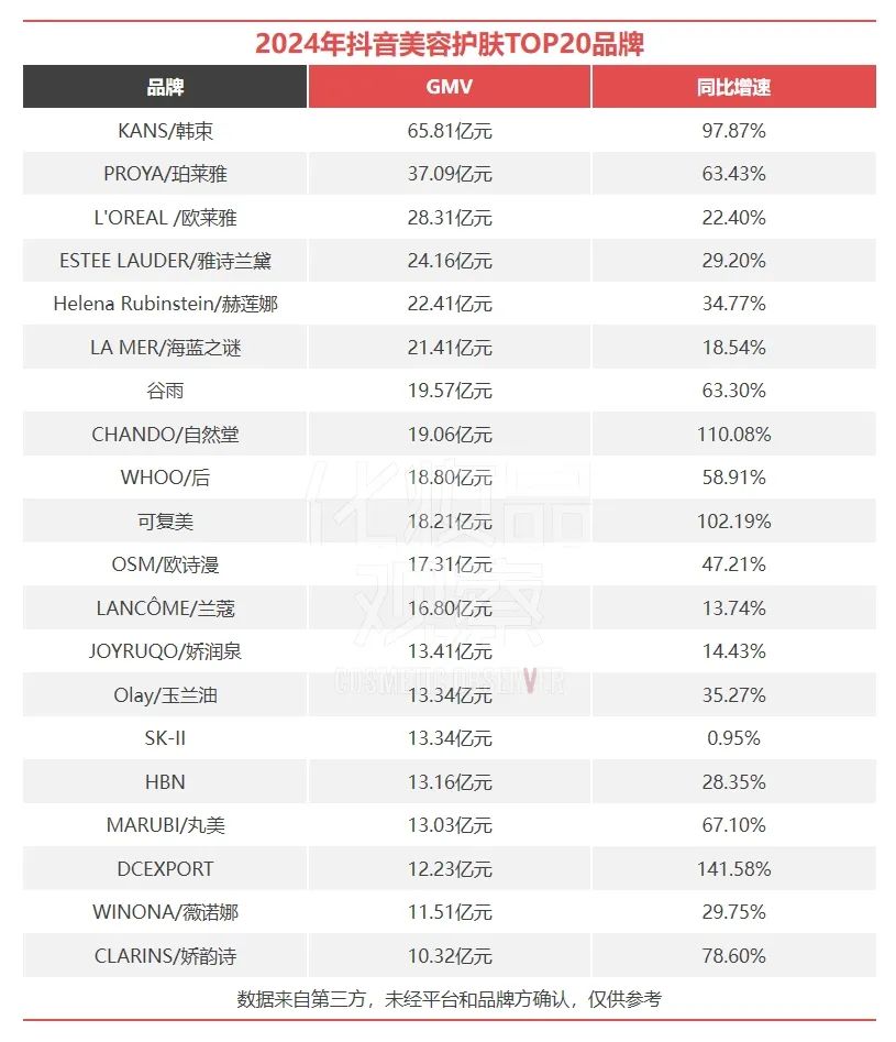 即便抖音仍然是大多数品牌的增长阵地,但对于国际品牌来说,30%左右的增速已是它们在护肤类目的普遍水准。