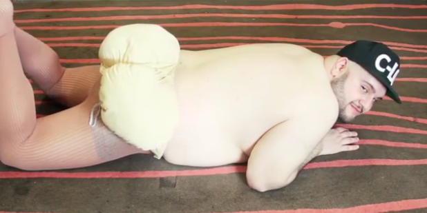 最近又有一个风格相近的魔性小人成了国内外的社交媒体新宠:身形像一根半生香肠似的裸体小人一边露出迷之微笑,一边回头慢悠悠地说,“没关系,你可以看我的屁股哦。”