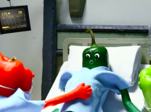 Kirsten Lepore也因此收获了许多客户。她为摩托罗拉、Wholefoods超市和雀巢等客户做过一些可爱的动画宣传片,脑洞也很大——比如为Heinz旗下一款Jalapeno辣椒味炸芝士饼制作的拟人广告,一个Jalapeno辣椒经过一番努力,生下了一支绿色小辣椒,颇为可爱。