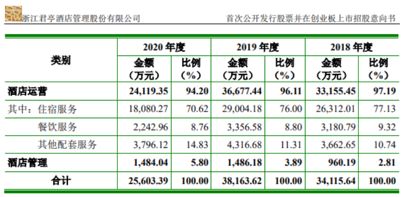 在财报里,君亭酒店直营业务叫“酒店运营业务”,受托管理业务叫“酒店管理业务”