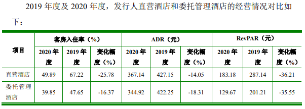 且更尴尬的是,2019年——2020年,君亭酒店直营店的OCC、ADR、RevPAR三项数据都要比委托管理酒店高。