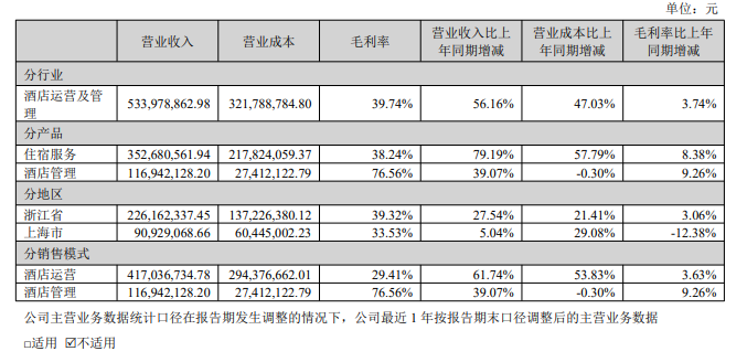 我们也可以从财报中看看君亭酒店自营业务的各项数据。