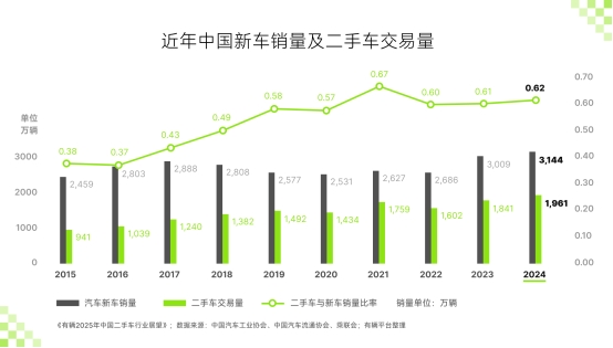 2025年,随着新车销量的增长、“两新”政策的推动和出行平台大量退役车辆的下线,越来越多的车源将流向二手车市场。