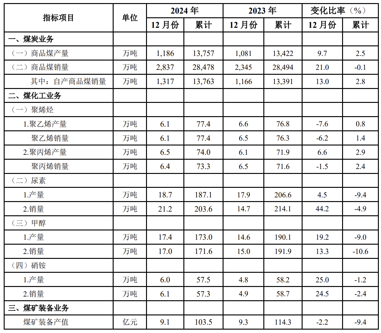 中煤能源1月14日公告,2024年商品煤销量2.85亿吨,同比下降0.1%。