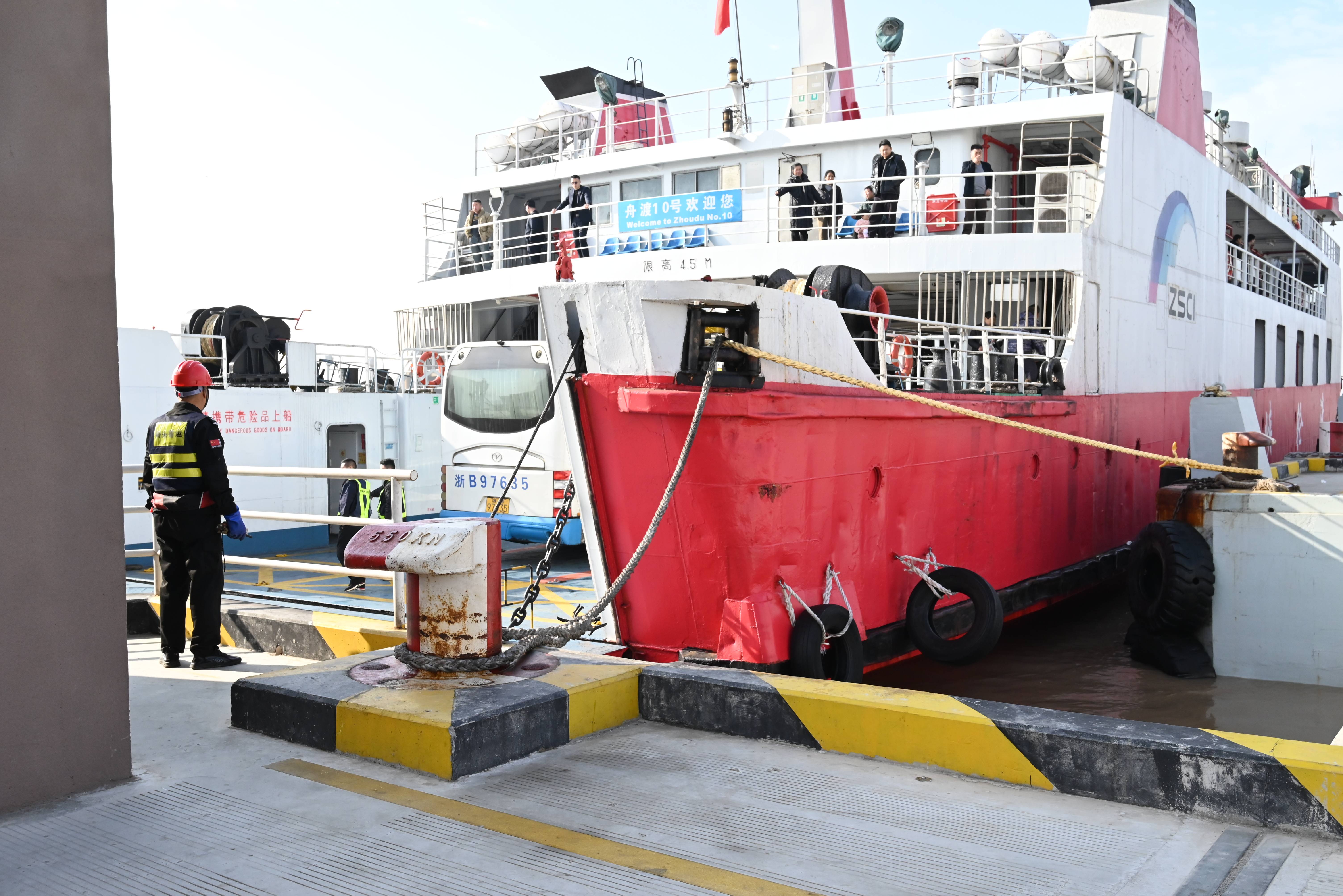 “这艘船是开往六横的双屿10轮,它是舟山六横运输公司运营的一艘客滚船,既能载客又能载车。”望着排队缓缓开上渡轮的车流,从小成长在内陆的主播晓颖听着码头工作人员的介绍,发出了由衷的赞叹。车客同渡,这是水路运输的一大特色。