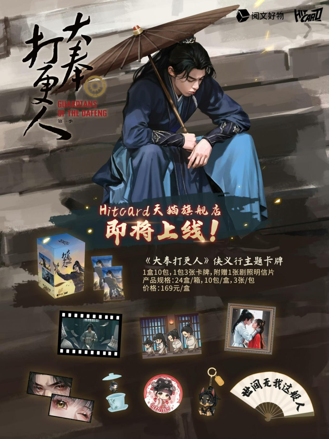 其中,阅文好物与潮流文化品牌 Hitcard携手推出的《大奉打更人》侠义行主题卡牌已在近日开售。值得一提的是,阅文于去年10月领投了 Hitcard(上海骑形网络科技有限公司),成为其第四大股东,持股近10%。