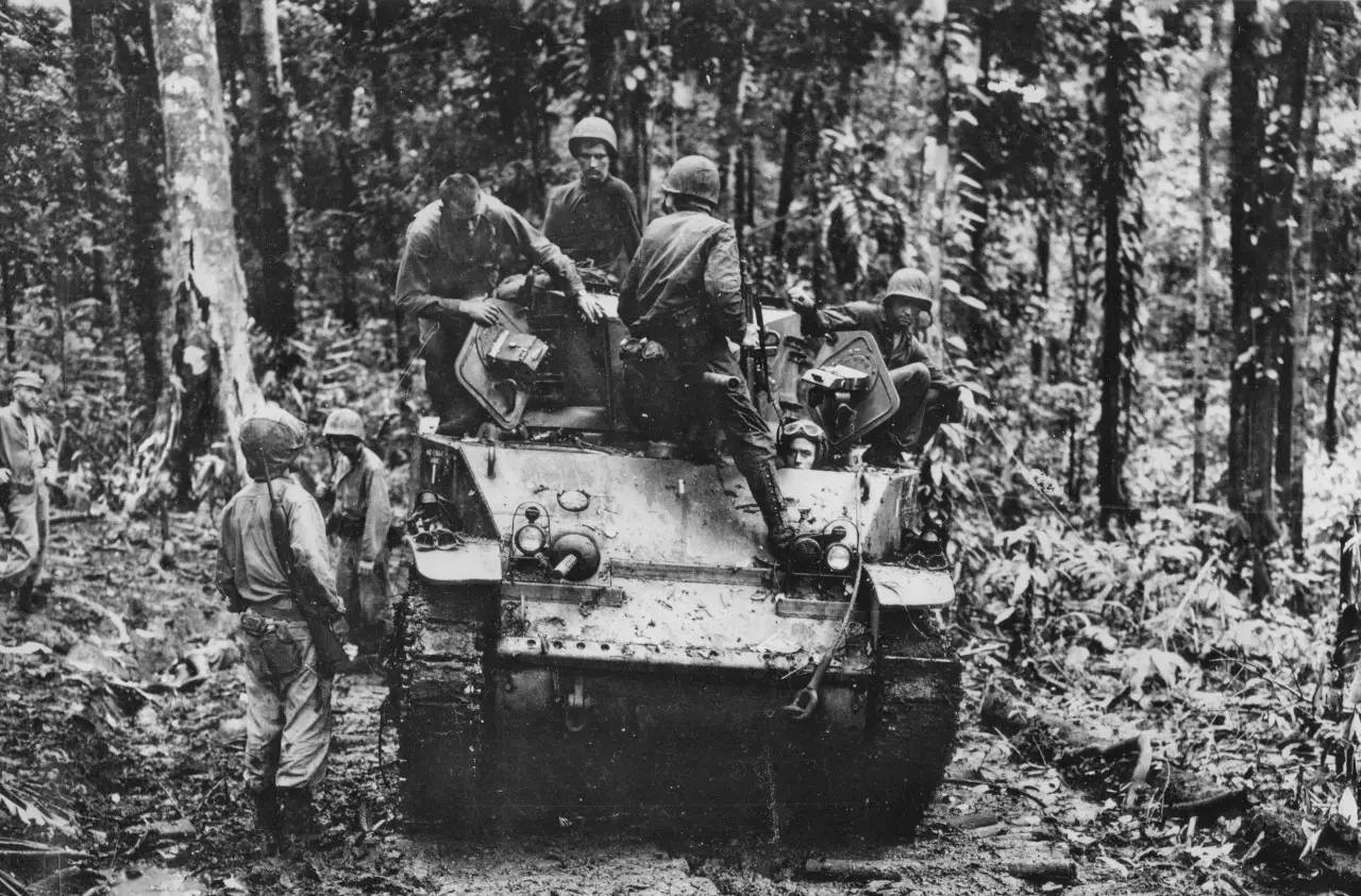 ▲美国海军陆战队第一师,在新不列颠群岛装备的M3轻坦