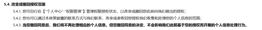 通义千问与豆包类似,个人能操作的仅有对语音服务的授权撤回,而对于其他信息,也是需要联系通过披露的联系方式与官方联系,才能改变或者收回授权收集和处理个人信息的范围。