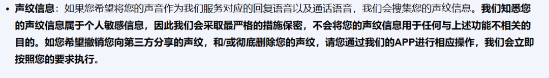 其实,从这些大模型产品的条款我们不难看出,收集用户输入信息似乎已经成了共识,不过对于更为隐私的声纹、人脸等生物信息,仅有一些多模态平台略有表现。