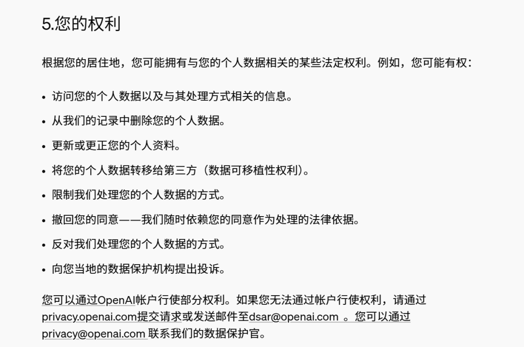 ChatGPT的规则有些模棱两可,称用户可能有权限制其处理个人数据,但在实际使用中发现,Plus用户可以主动设置禁用数据用于训练,但对于免费用户,数据通常会被默认收集并用于训练,用户想要选择退出则需要给官方发件。
