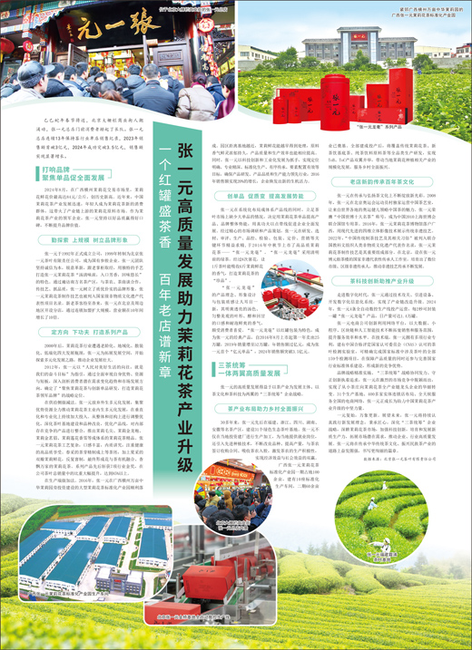 品牌战略精准实施、“三茶统筹”战略协同发力、守正创新执着追求,张一元在激烈的市场竞争中脱颖而出,实现了从小茶庄向茉莉花茶全产业链龙头企业的华丽转变。31个生产基地、400多家实体连锁店布局、全天候服务全国的电商网络,张一元正成长为助力中国茉莉花茶产业升级的中坚力量。