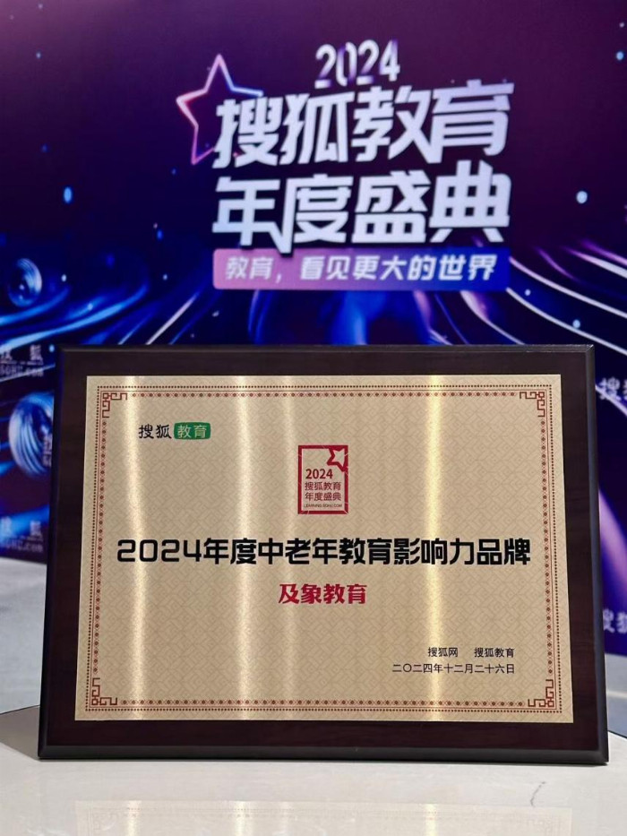 近日,备受瞩目的搜狐教育年度盛典在北京隆重举行。此次盛典以“教育,看见更大的世界”为主题,汇聚了众多行业的专家学者、企业家和权威媒体代表,共同总结与探讨教育的发展趋势和方向。在这场盛会上,专注于服务退休人群的在线教育平台及象教育,凭借其卓越的成绩和显著贡献,荣获“2024年度中老年教育影响力品牌”。