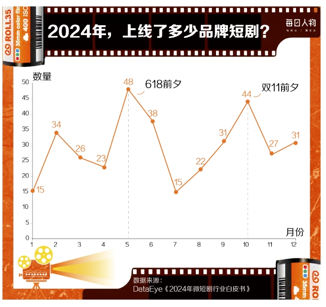 除了内容上的创作者,短剧也成了各家品牌营销的必争之地。“618”和“双十一”这样的购物节期,是品牌短剧上线的高峰期,淘宝有《王妃娘娘,有人下单啦!》,京东有《伍折天重生之女帝当“总裁”》,赚眼球也赚流量。