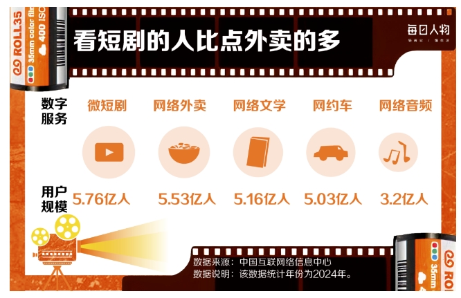 短剧的用户市场非常庞大。据《中国微短剧行业发展白皮书(2024)》,截至2024年6月,我国短剧用户规模已达5.76亿人,占整体网民的52.40%,这个数字已经超过了网络外卖、网络文学和网约车用户数。
