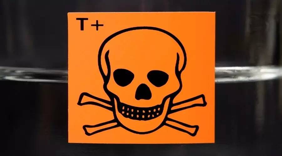 砒霜学名三氧化二砷(As2O3),是已知的最古老的最广泛使用的毒药。鹤顶红也是砒霜的一种,由于提纯工艺问题,里面掺有杂质而呈现红色或者红黄色,而进一步提纯的砒霜一般呈白色。三氧化二砷经口摄入的致死剂量为60mg,即0.06克就可致命,毒性很强。砷中毒不仅可以通过口服引起,还可经皮肤和创面直接吸收。
