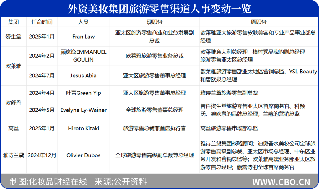 外资美妆集团释放出重振旅游零售业务的积极信号,据CBO不完全统计,自去年开始,至少发生了7起有关旅游零售业务高管的人事任命,涉及集团的全球旅游零售董事总经理、亚太区旅游零售董事总经理等关键职位。