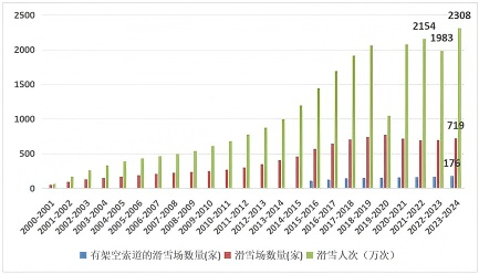 《2023-2024中国滑雪产业白皮书》指出,这个雪季全国总滑雪人次达到2308万,同比增长16.3%;滑雪参与人数为1280万人,同比增长14.49%。但人均滑雪次数仅为1.8次,仍未达到冬奥会前2020-2021雪季的历史峰值1.91次,也远低于欧美和日本水平。