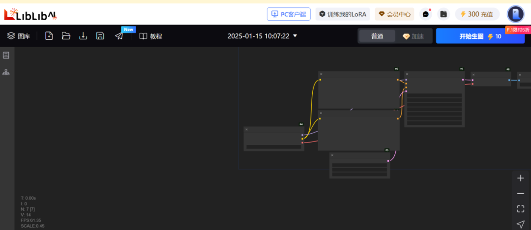 如果使用“在线工作流”进行制作,能够提高生成图片的可控性,但也有很多限制,比如堆友将此项设置为年卡会员专享,售价299元。哩布哩布支持非会员使用,但由于操作界面过于复杂,很容易劝退“小白”。即便是专业从业者,也需要花时间学习。研究智能体结合绘画做组合输出型内容的年轮表示,自己最开始用的是Stable Diffusion,但因为参数设置比较复杂和电脑反应不够灵活,便弃用了。