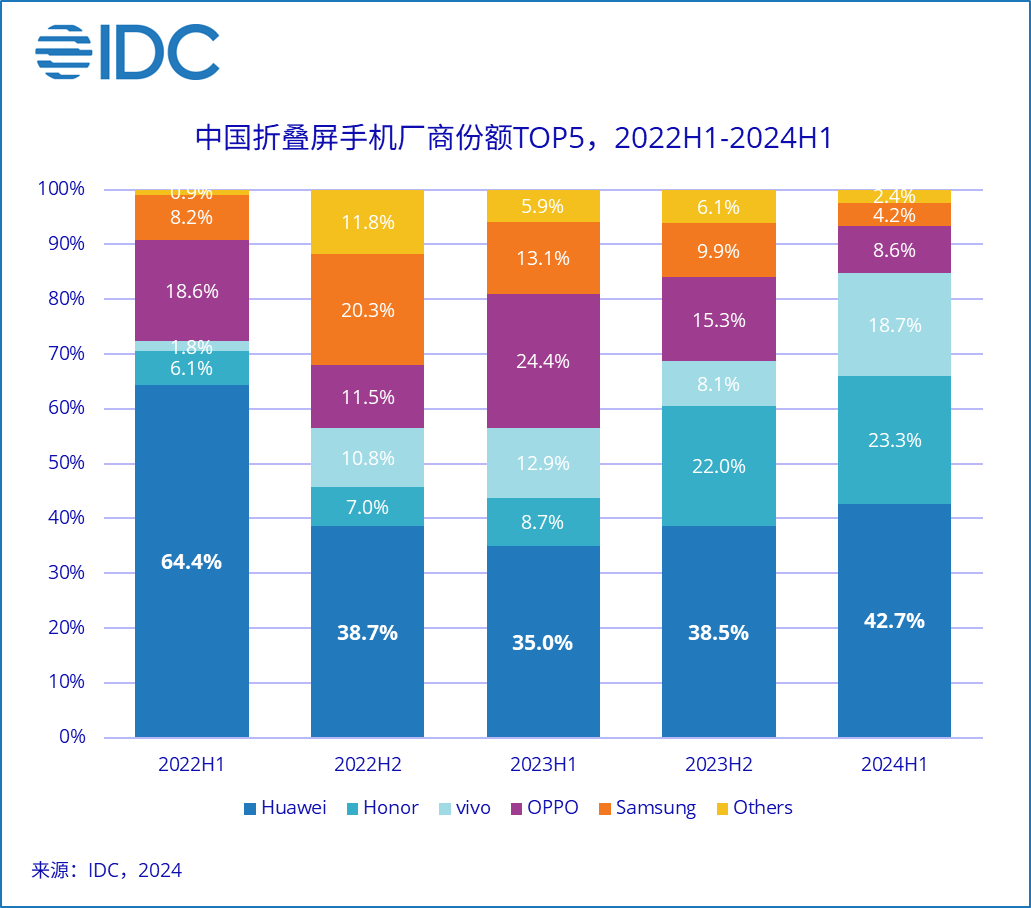 更悲观的是,由于实用性不强,折叠屏手机已经不再受宠。Counterpoint Research数据显示,预计2024年,中国折叠屏手机出货量同比增速仅为2%,与前几年三位数的同比增速形成鲜明对比。