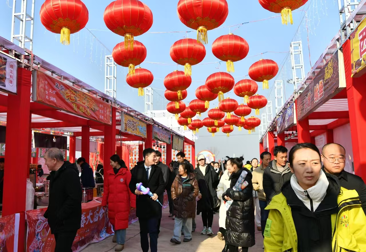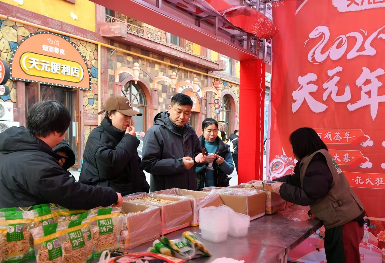 本次新春庙会年货节打造了“国潮花灯”“百戏荟萃”“年货大集”“美食大赏”“花火表演”等主题活动,为市民提供全业态、全时段的沉浸式非遗美食和演艺技艺体验活动,同时还邀请了网红达人、主播、非遗传承人等参加“逛集过大年”线上直播活动,线上线下共同过大年。在年货大集上,乡伊香农特产品、骨瓷、棋子烧饼等特色产品及非遗手工艺品等琳琅满目,为市民提供了一站式采购平台,市民不仅可以逛大集感受春节氛围,还能购买到心仪的年货商品。