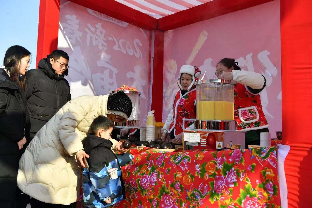 “我们是从哈尔滨来的,在那儿卖了几年的冻梨和玉米汁,今年听说迁安要举办新春大庙会活动,特意与朋友来这里参加活动,冻梨和玉米也是从东北运过来的,给迁安的顾客们尝尝我们东北特色。”在年货大集上,不少游客被“网红”冻梨吸引,“尔滨大冻梨”摊主杨虹高兴地向大家介绍说。