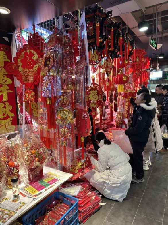 消费是经济发展的镜子。“年味”浓浓的市场大集,充满烟火气的消费市场,折射出当下区域消费市场的韧性和活力。在走访中发现,除了购买传统的食品、烟酒、糖果等年货外,一些具有蛇年元素的商品也成为了热门选择。蛇年主题春联、呆萌的“蛇宝宝”挂件、蛇形毛绒玩具等生肖蛇系列商品走俏市场。在浮山所农贸市场,春联挂件百货摊前挤满了购物的顾客。“购买这些带有生肖元素的商品,不仅是为了装饰家居,也是为了增添节日的氛围。”不少市民表示。在麦凯乐一层的珠宝销售柜台,市民宋女士刚刚选购了一颗蛇形转运珠,她生肖属蛇,“本命年买个转运珠戴,祈愿来年顺顺利利”。据柜台销售人员表示,生肖蛇形项链、手镯、转运珠等卖得都不错,“顾客比平常多好几倍”。