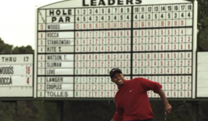 伍兹在最后一轮交出69杆后,以大师赛史上最低的72洞成绩夺冠,而且领先12杆。这也预示着“伍兹时代”的到来。