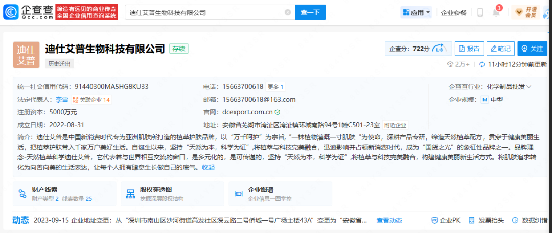 而另一大安徽IP帮品牌,便是迪仕艾普。据了解,迪仕艾普创始人为叶海洋,隶属于迪仕艾普生物科技有限公司,企业地址在2023年变更为安徽省芜湖市。