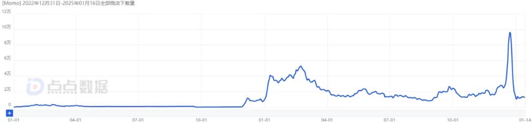 (Momo自上线以来全球下载量,图源:点点数据)