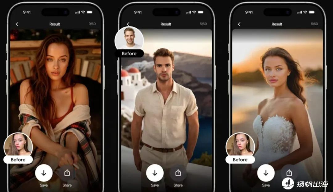 图生图产品层出不穷,Momo在这一领域中,选择了更加细分的方向,专注于人像生成。且生成后的内容不仅仅是用于社交媒体的分享,还可以生成证件照、形象照、游客照等等,将其运用到工作、生活中的方方面面,通过增强实用性的方式来扩大用户群体。