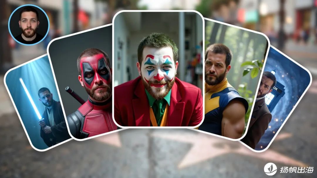 而后便是选择应用中所提供的模板,根据训练出的面部图像,将其“复刻”上去。不过,这种模板套用并不是简单的“换脸”,而是在此之上,有了更丰富的表情、肢体动作和外观服饰。
