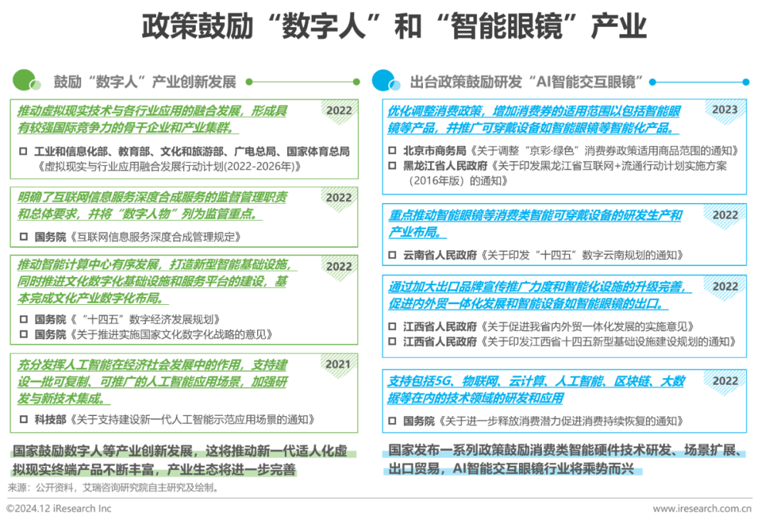 “数字人”和“智能眼镜”相关支持政策双轮驱动,利好AI智能交互眼镜行业和市场