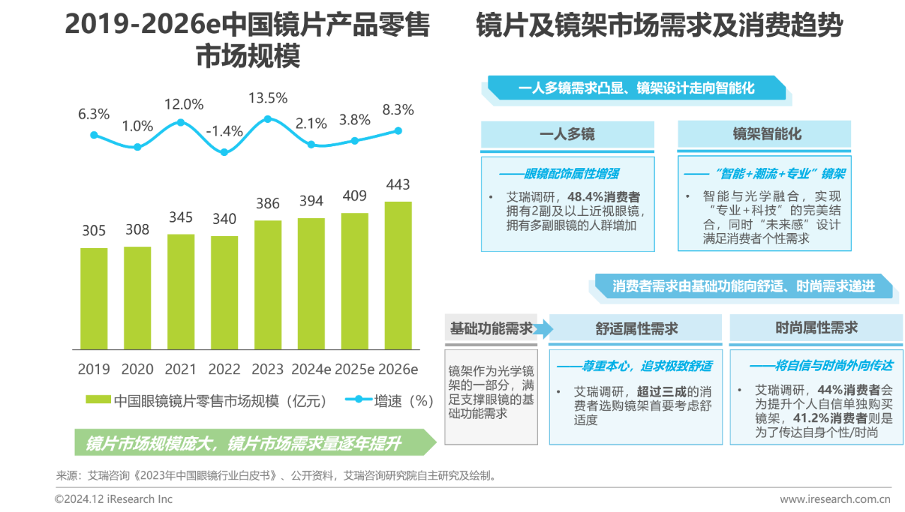 镜片市场规模庞大,消费者需求趋势转变,对时尚智能眼镜的呼声强烈