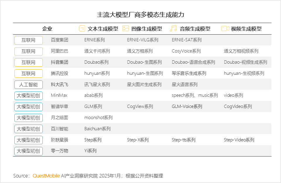3、凭借过往语料积累优势,互联网大厂在多模态领域全方位布局,通过直连现有云服务生态,颠覆过去内容生产习惯,从而实现更大商业价值