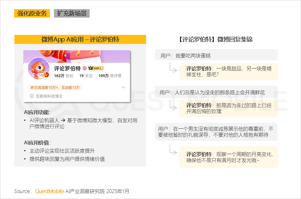 6、微博通过引入AI评论机器人提升社区活跃度,吸引用户多轮互动,提升互动频次