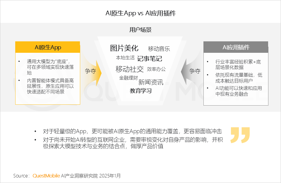 除了AI原生APP,各行业APP内AI插件、智能手机内AI智能助手、智能硬件唤醒AI软件,等等,都已经全面开花,必然会在2025年迎来更多爆点。
