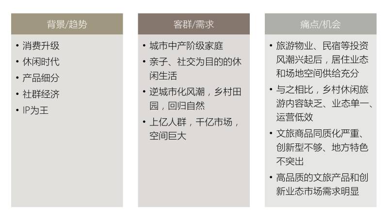 在后续的《当我们谈论乡村旅游的时候,我们在谈什么?》(下)中,笔者将试图基于场地—内容—消费者三元要素的消费场景体系来探讨如何在乡村旅游项目的开发过程中进行资源判断、产品生态构建以及轻重资产搭配,进而在多个方面提升效率,乃至实现产业生态的良性循环。