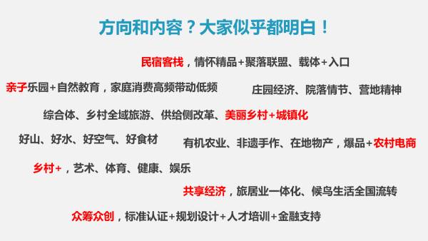 可以想象,经过这一拨乡村旅游的投资热潮,整个行业供给加大,以民宿业态为代表的乡村旅游产品稀缺性的红利期即将过去,在中国这样一个价值观特别拥挤、排浪式消费特征明显的市场环境下,不管有再多的政策支持、有再深厚的情怀寄托,面对产品同质化严重、快速迭代竞争的市场,我们还是要有回归商业逻辑的基本常识,在这个基础上,判断资源,定位市场,打造产品,提升服务,建立客户的忠诚度,在伴随乡村旅游大发展的冰与火中赢得市场的主导权。
