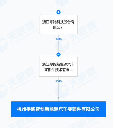 天眼查App显示,近日,杭州零跑智创新能源汽车零部件有限公司成立,法定代表人为朱江明,注册资本1000万元,经营范围含汽车零部件及配件制造、汽车零部件研发、汽车零配件零售、太阳能发电技术服务、光伏发电设备租赁、技术进出口等。股权全景穿透图显示,该公司由浙江零跑新能源汽车零部件技术有限公司全资持股,后者为零跑汽车全资子公司。