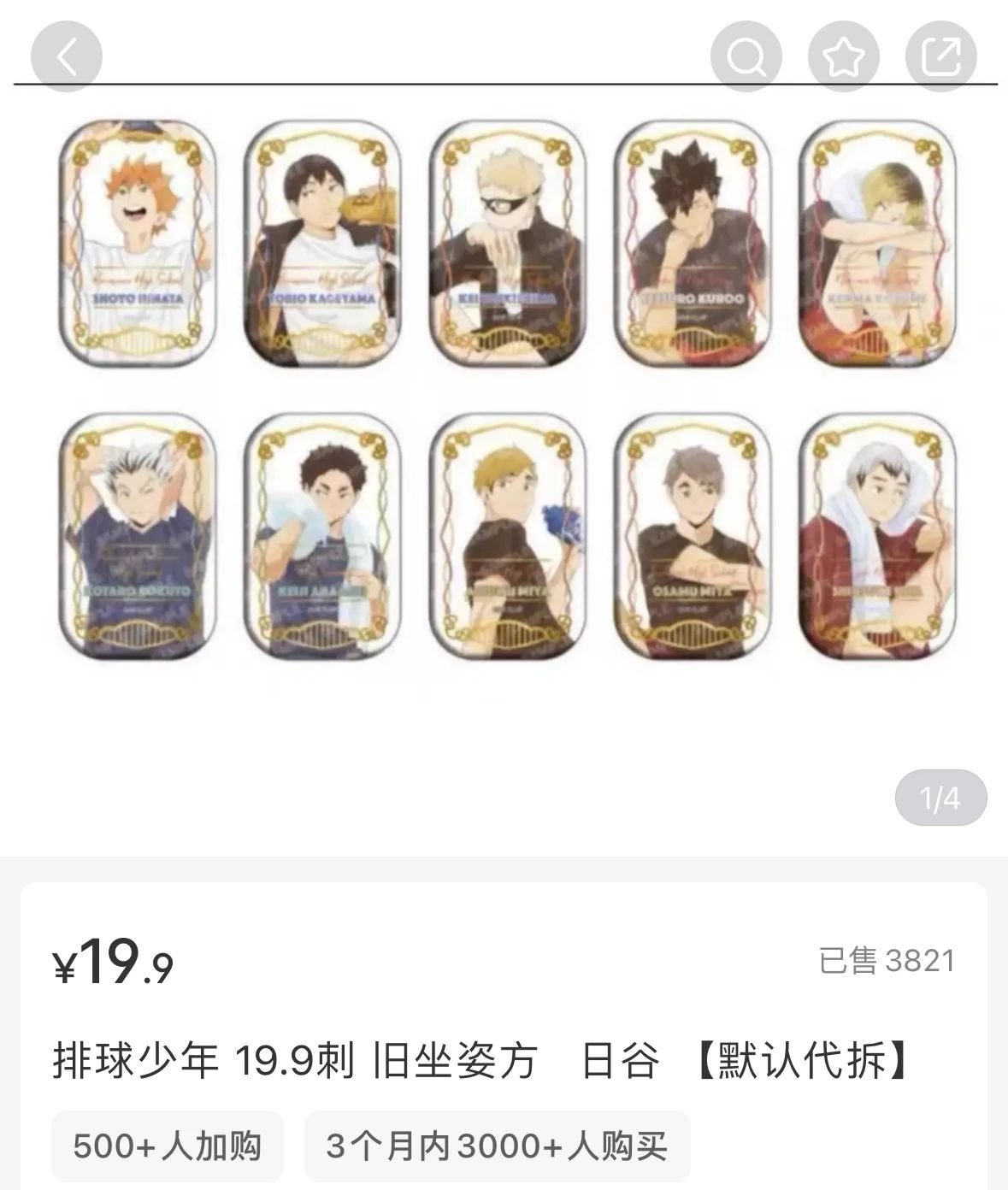 比如在国内拥有庞大受众群体的日漫IP,购买相关周边无论是走动漫周边连锁品牌店的渠道还是个人代购渠道,等待周期都较长。以《排球少年》近期推出的应援团系列徽章为例,该周边近日已经在日本发售,目前模玩熊、万社屋等电商平台周边大店显示仍在等待商品出货,但就在1月18日前后,该周边现货便出现在了抖音和小红书的一些拆卡直播间。