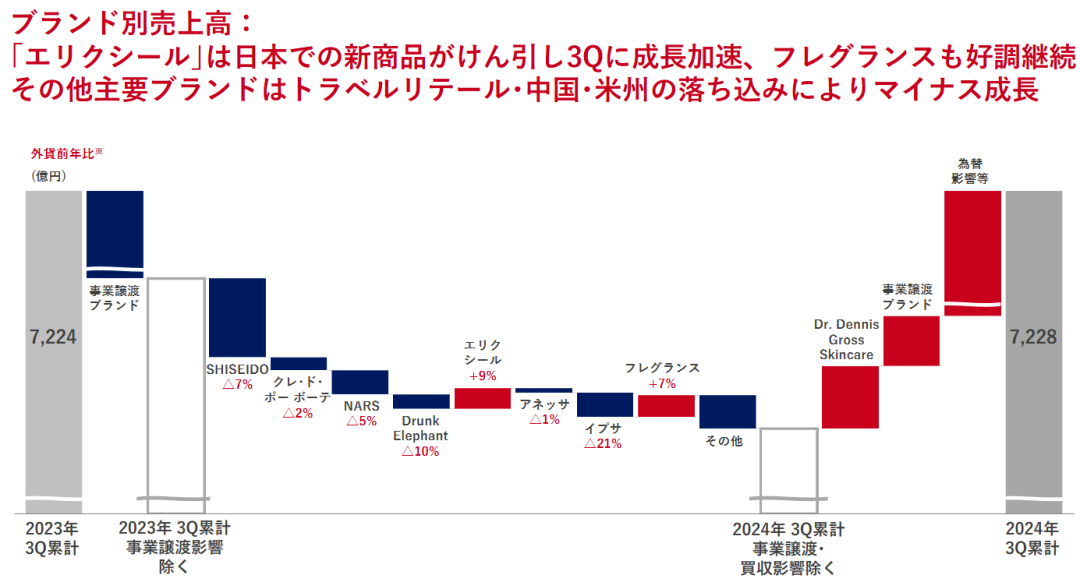 资生堂集团亦是如此,2024年前三季度,其旗下资生堂品牌、CPB肌肤之钥呈个位数下滑,而IPSA茵芙莎则大跌21%。