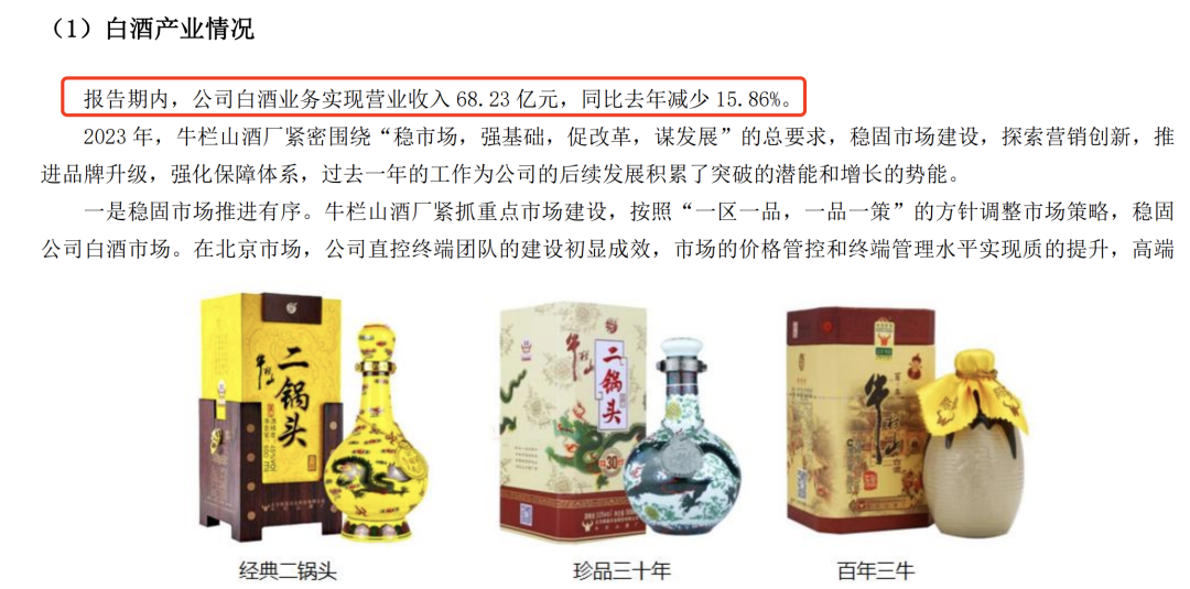 不过,牛栏山有“民酒之王”的基础。2023年牛栏山全年营收为68.23亿元,即便考虑到2024年可能会有所下跌的情况,其规模依然在光瓶酒市场算得上强者。