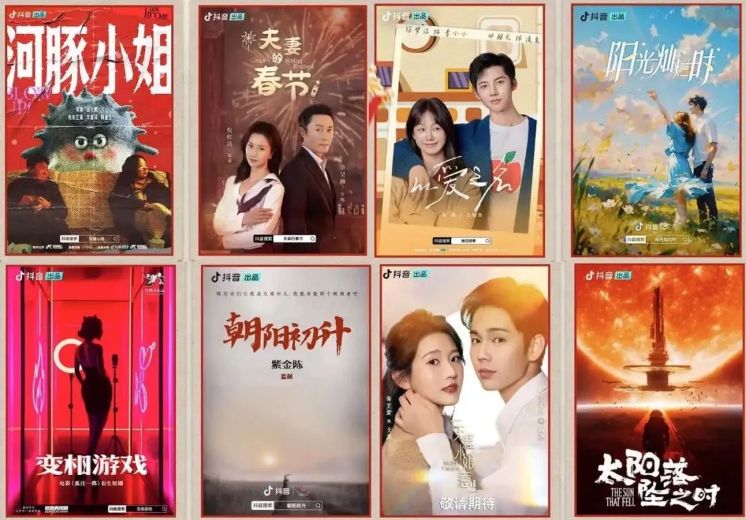 今年,抖音宣布2025年短剧春节档启动,由抖音出品的《河豚小姐》《夫妻的春节》《阳光灿烂时》《以爱之名》等30部精品短剧将轮番上线,覆盖春节、家庭、爱情、青春、成长等各类主题。