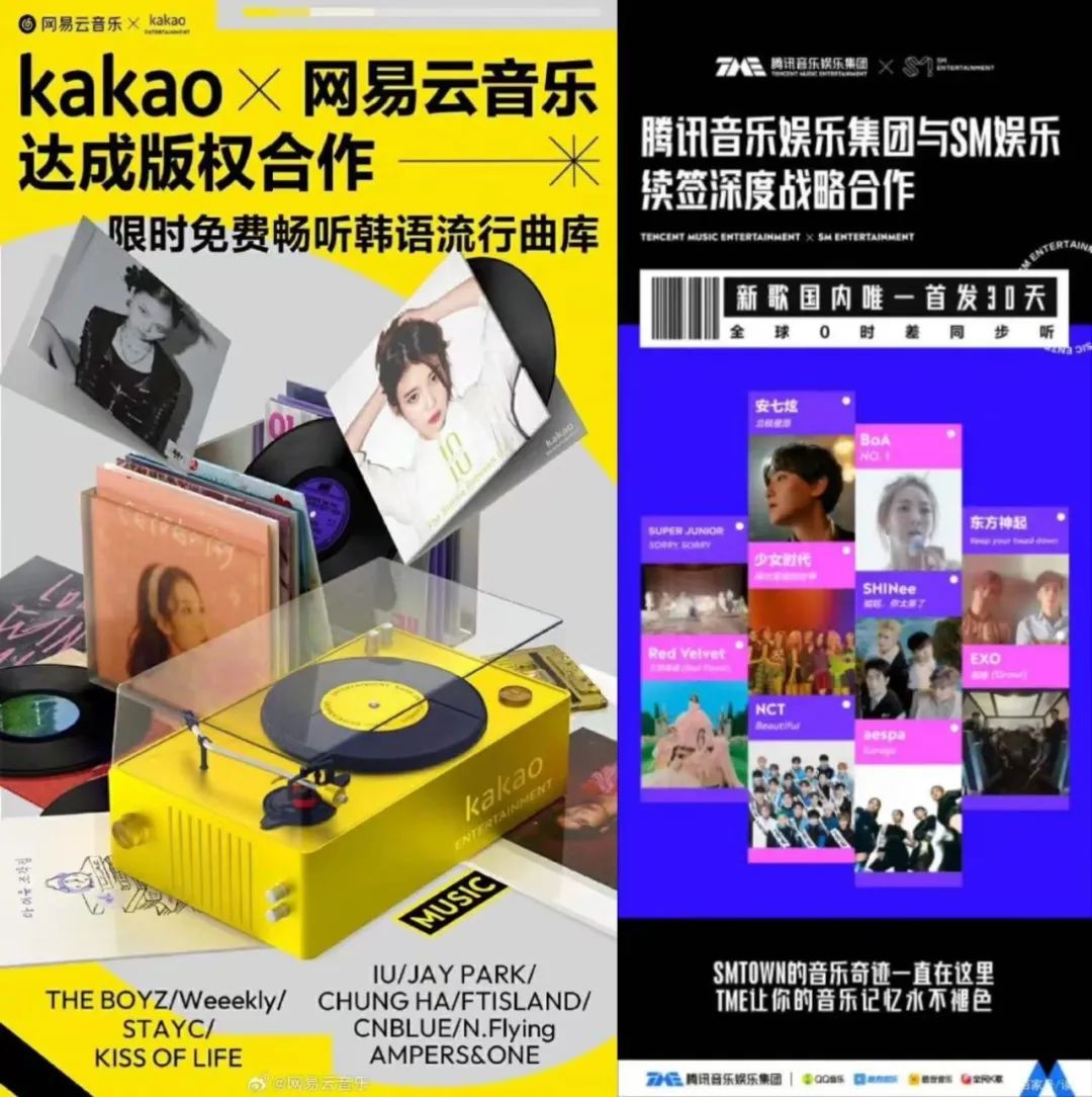 版权之争或许一直在看不见的地方兵戎相见。2022年,网易云音乐宣布SM娱乐版权回归之前,腾讯音乐TME宣布与SM娱乐深化战略合作,并拥有SM娱乐新歌在中国内地独家首发30天的权利。