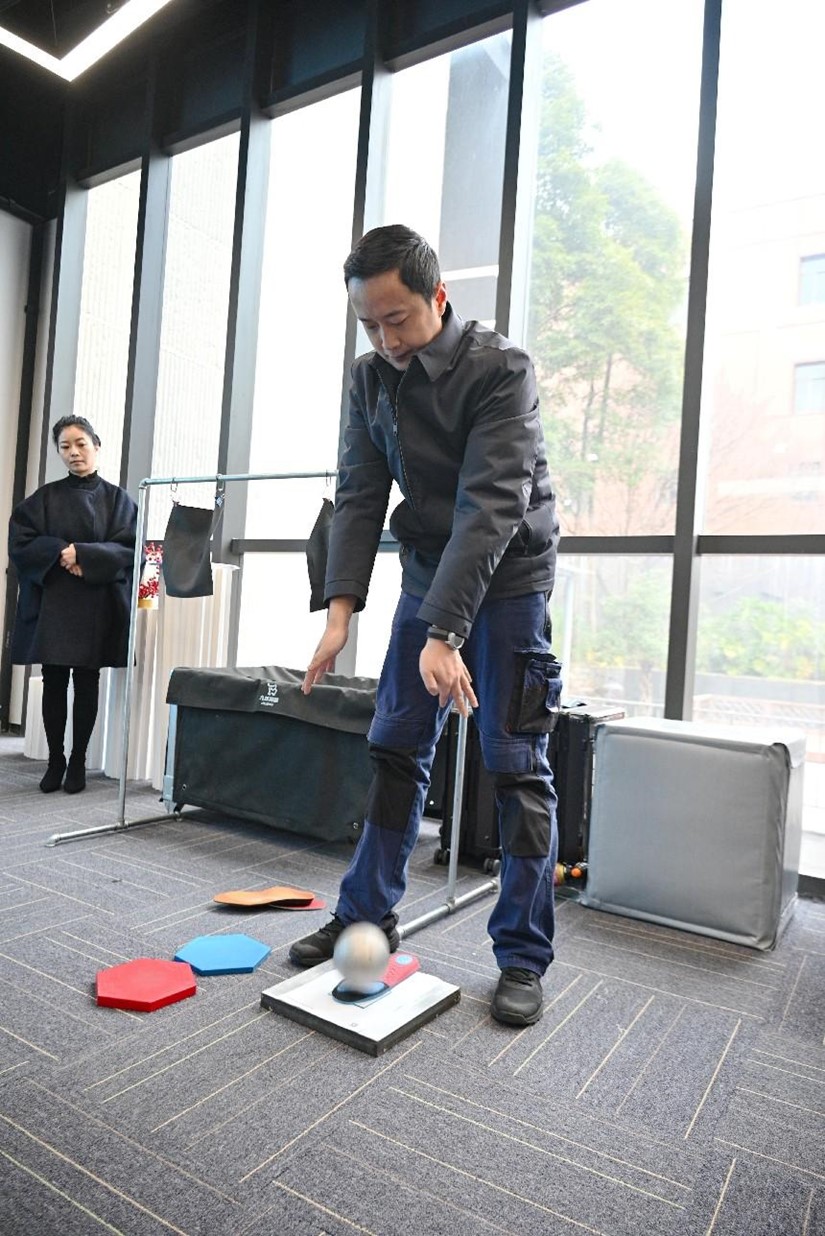 “从外观看,这确实是个普通鞋垫。但我们在鞋垫中加入了仿生吸能超材料,可以瞬间吸收97.1%的冲击力,因此玻璃才能受强力冲击而完好无损。97.1%这一数据,在全球都处于领先地位。”尹勇表示。
