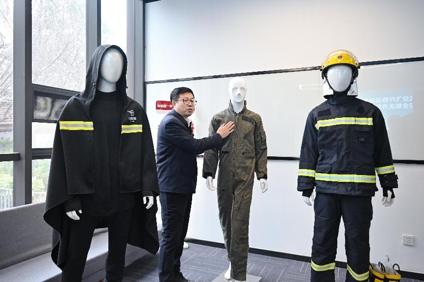 “特别是在火灾预防、扑救等领域,应用前景广阔。”尹勇介绍,家中安装了防火窗帘,可极大降低火灾发生的风险。倘若家庭发生火灾,使用高性能不燃材料制成的灭火毯可快速扑灭火灾;即便是火势太大无法扑灭,也可以裹上灭火毯当逃生衣迅速撤离火灾现场。当新能源汽车、电瓶车发生爆炸时,还可以迅速搭建起防爆阻燃隔离墙,极大降低燃烧爆炸带来的伤害。而在钢铁厂等特殊场所,公司生产的特定防护服,可以有效避免炼钢钢水飞溅等烫伤事故,最大化减少安全事故的发生。