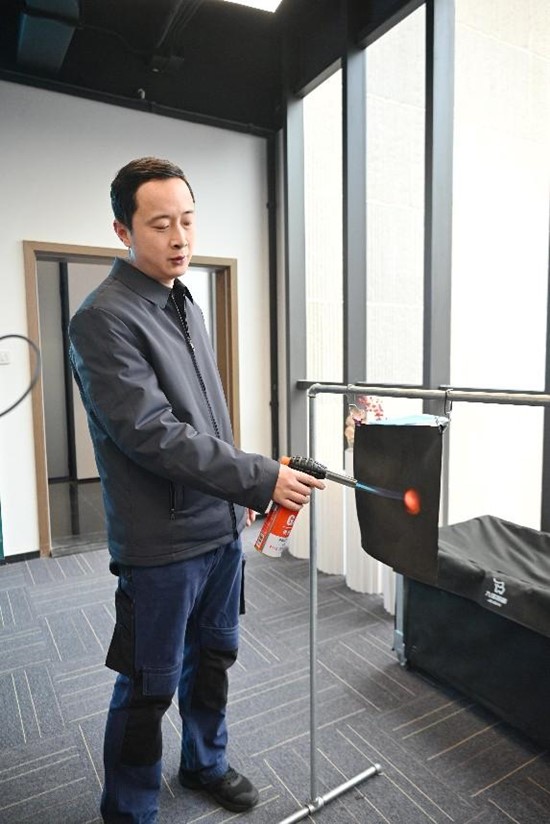 “我们是一家专注防爆阻燃安全防护解决方案提供商,这听起来有点复杂,但带你们看个实验便一目了然。”公司创始人、董事长尹勇安排公司工作人员做了一个小实验。