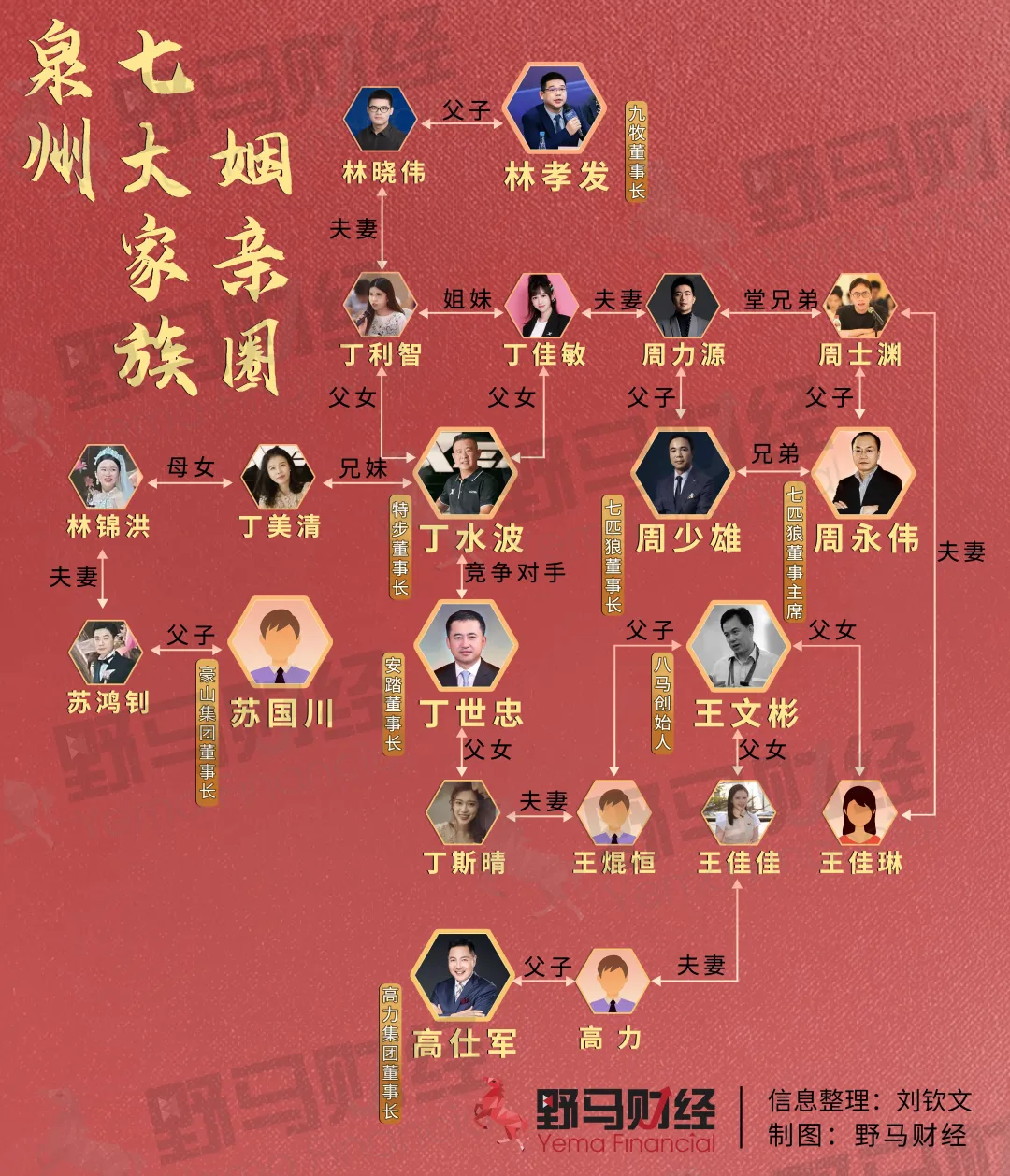 在泉州晋江,八马茶业、特步、九牧、七匹狼、安踏、豪山集团、高力集团被网友称作“七大豪门”,几大公司虽分属不同行业,但逐渐通过姻缘变得密不可分。