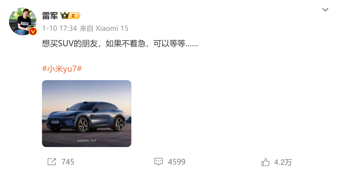 从命名引发网友热议,到雷军亲自回应Y-U-7读音,再到透露上市时间,小米SUV还未正式上市,就已赚足了眼球。